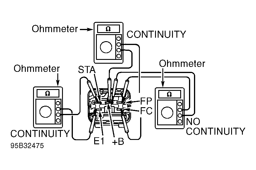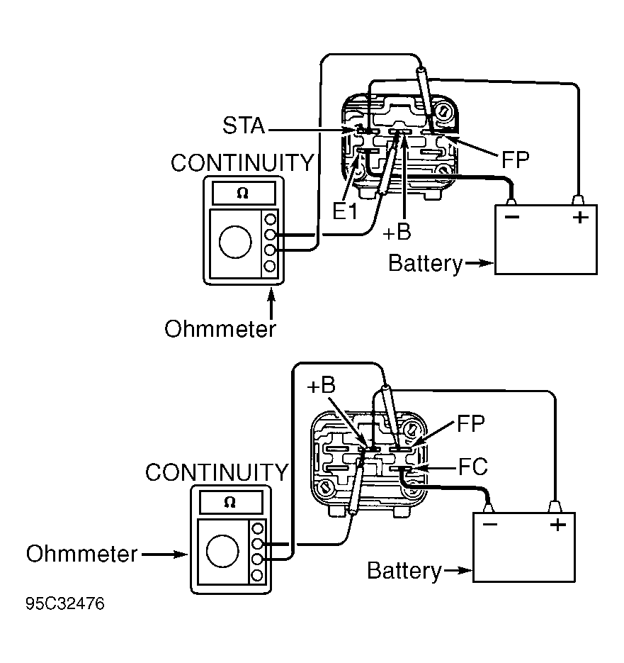 2. To test circuit opening relay continuity, using ohmmeter, check continuity between specified terminals. See Fig 1 and Fig 2.