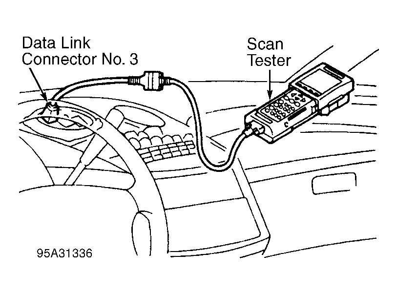 8. Turn ignition off. Remove scan tester from data link connector No. 3. Reinstall cover (if equipped). Start engine and allow engine to idle.