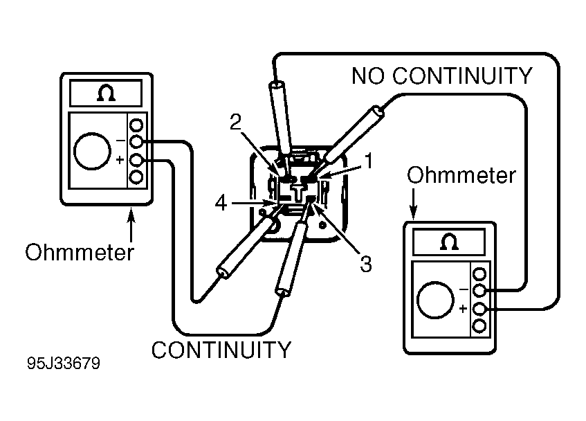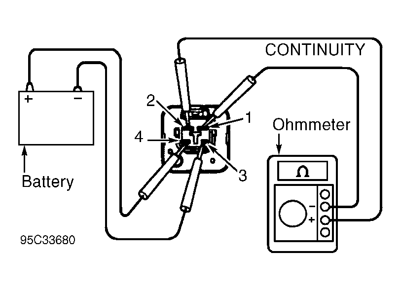 2. To test supercharger relay continuity, using ohmmeter, check continuity between specified terminals. See Fig 1 and Fig 2.