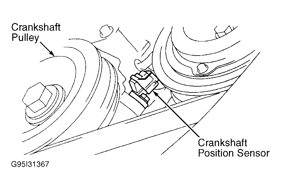- Disconnect electrical connector from crankshaft position sensor. Crankshaft position sensor is located at front of crankshaft, near crankshaft pulley. See Fig 1.