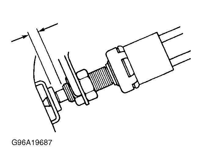 Stoplight switch is located above brake pedal. See Figure. To adjust stoplight switch, remove instrument lower finish panel and air duct (if necessary). Loosen stoplight switch lock nut. Turn stoplight switch until clearance between switch and brake pedal stop is .020-.094" (.5-2.4 mm). See Fig 1. Tighten lock nut. Check stoplight operation.