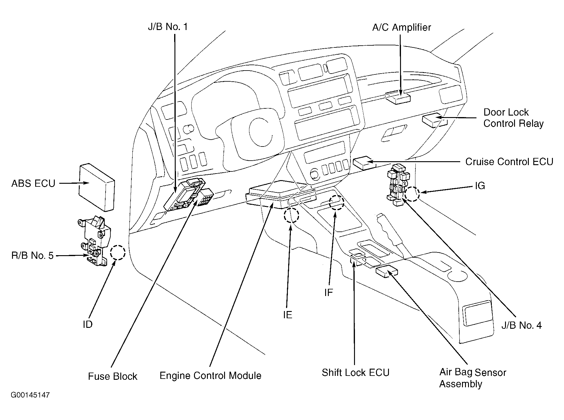 | J/B No. 1 | On lower left side of dash. See Figure. |