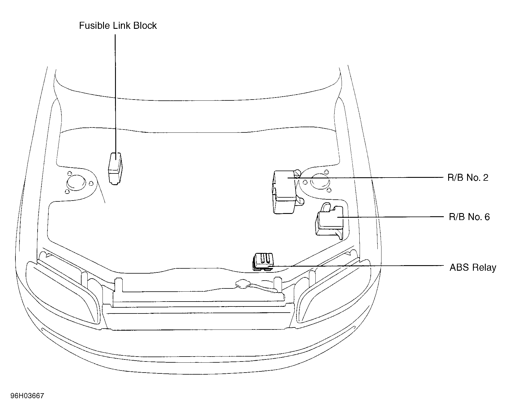 | R/B No. 6 | In front of left front strut tower. See Figure. |
