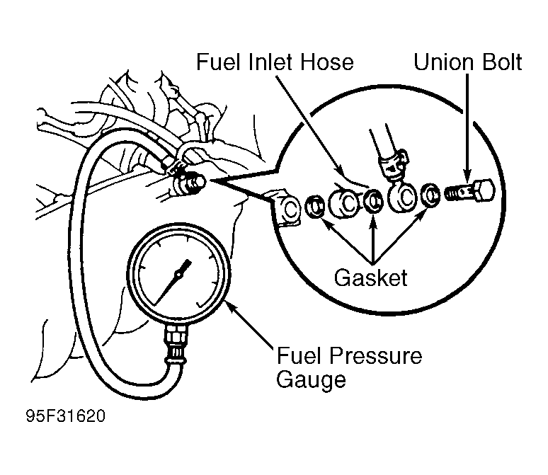 - Disconnect negative battery cable. Remove fuel pressure gauge. Reinstall union bolt using NEW gaskets. Tighten union bolt. Install negative battery cable. Recheck for fuel leaks.