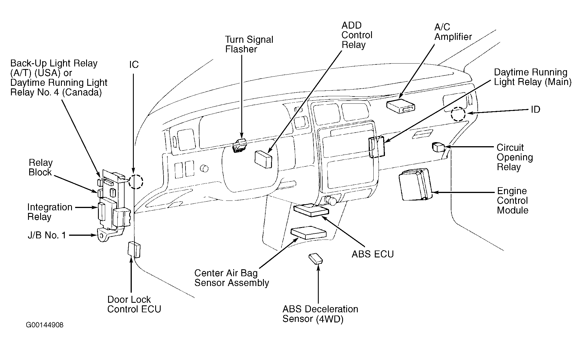 | ABS ECU | Below center of dash. See Figure. |