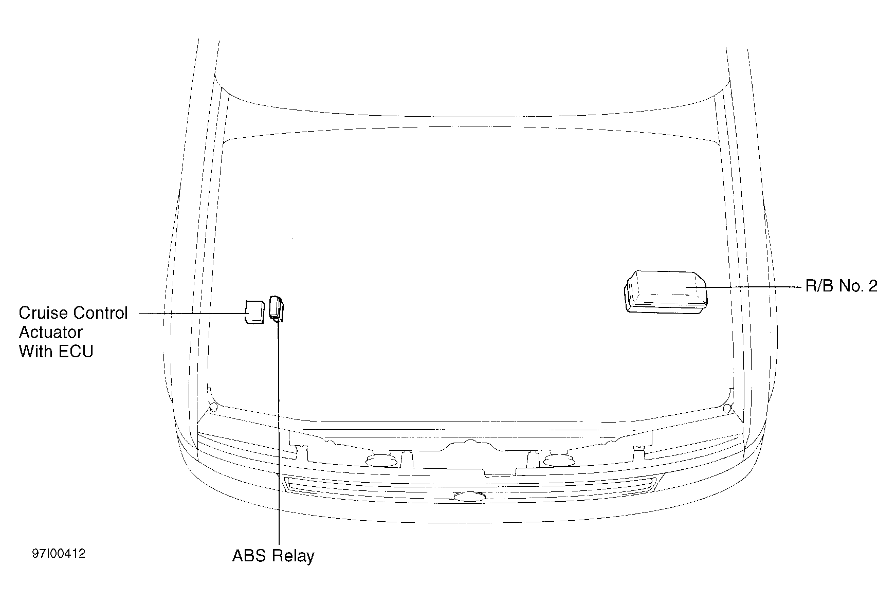 | Cruise Control Actuator With ECU | On right side of engine compartment. See Figure. |