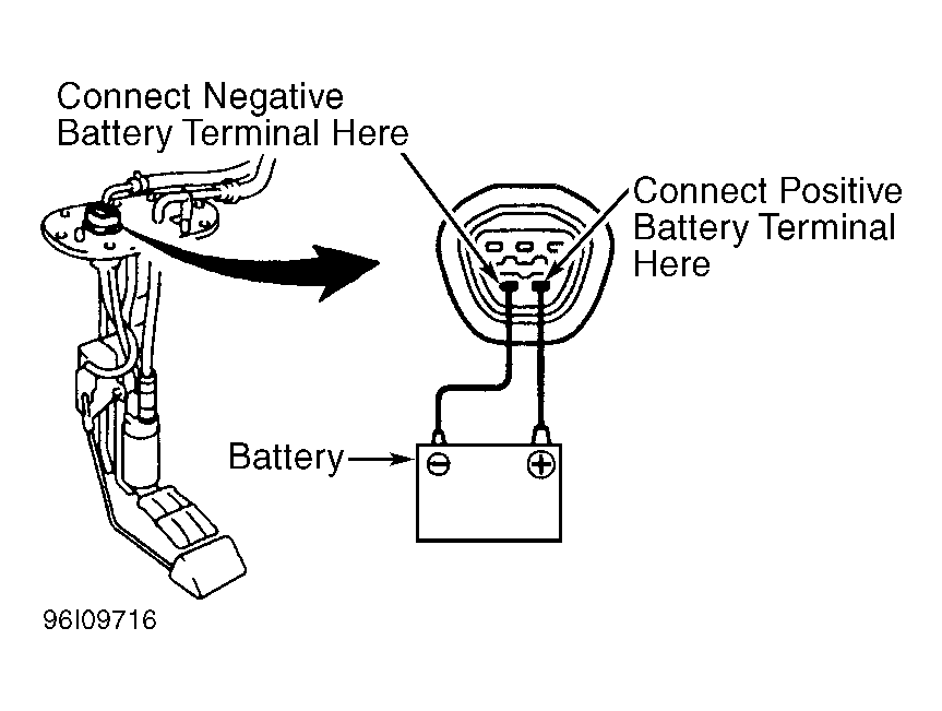 - Turn scan tool on. Select ACTIVE TEST MODE on scan tool. Using scan tool manufacturer's instructions, activate fuel pump and note fuel pressure. Fuel pressure should be within specification. See FUEL PUMP PERFORMANCE table.NOTE: Fuel pump may also be activated by connecting battery voltage to specified terminals on fuel pump. See Figure.