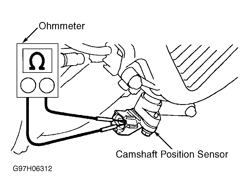 - Ensure camshaft position sensor resistance is within specification. See CAMSHAFT POSITION SENSOR RESISTANCE table. Replace camshaft position sensor if resistance is not within specification. See REMOVE/INSTALL/OVERHAUL article. Reinstall electrical connector on camshaft position sensor.