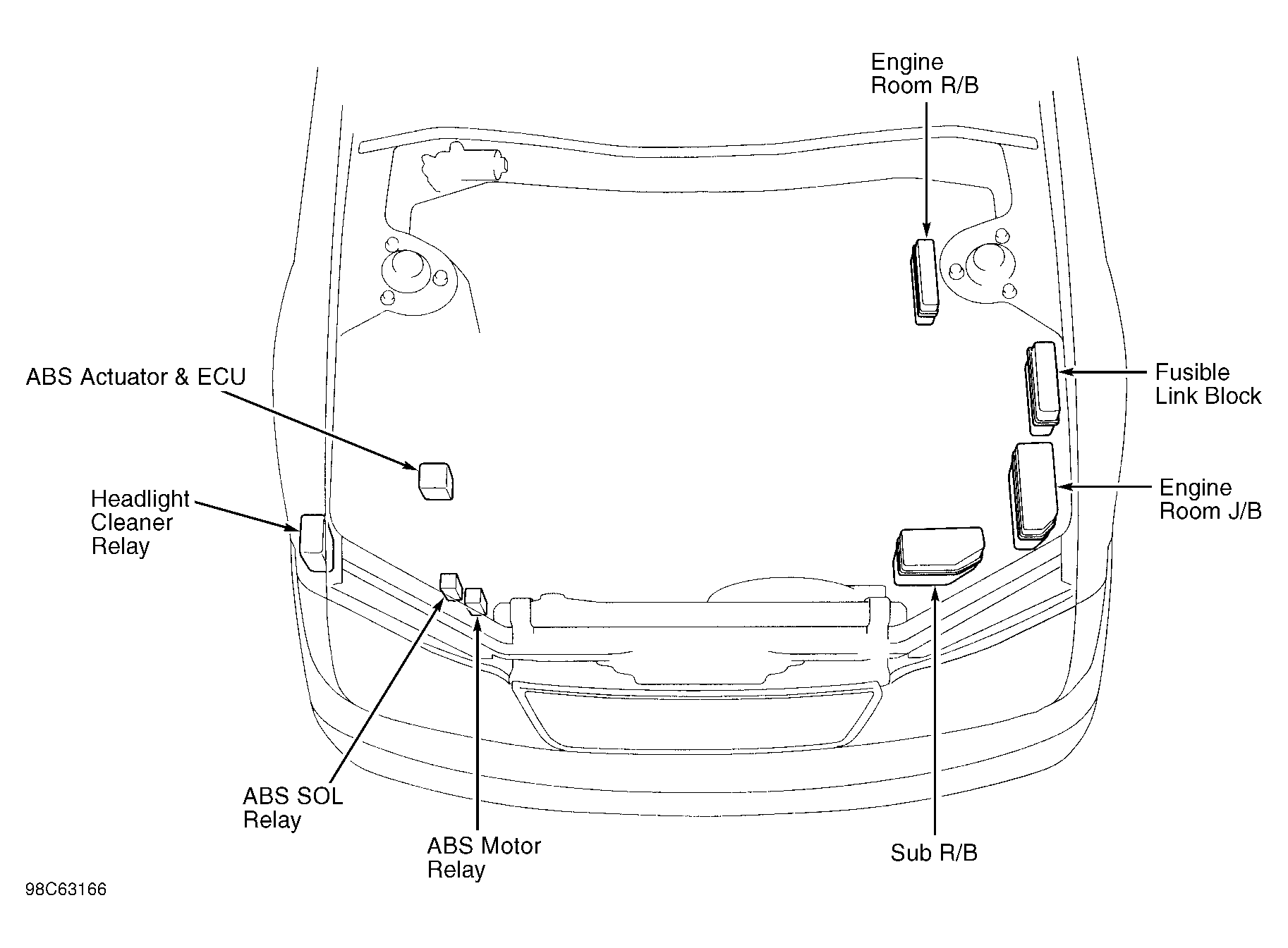 | ABS Actuator & ECU | On right front of engine compartment. See Figure. |