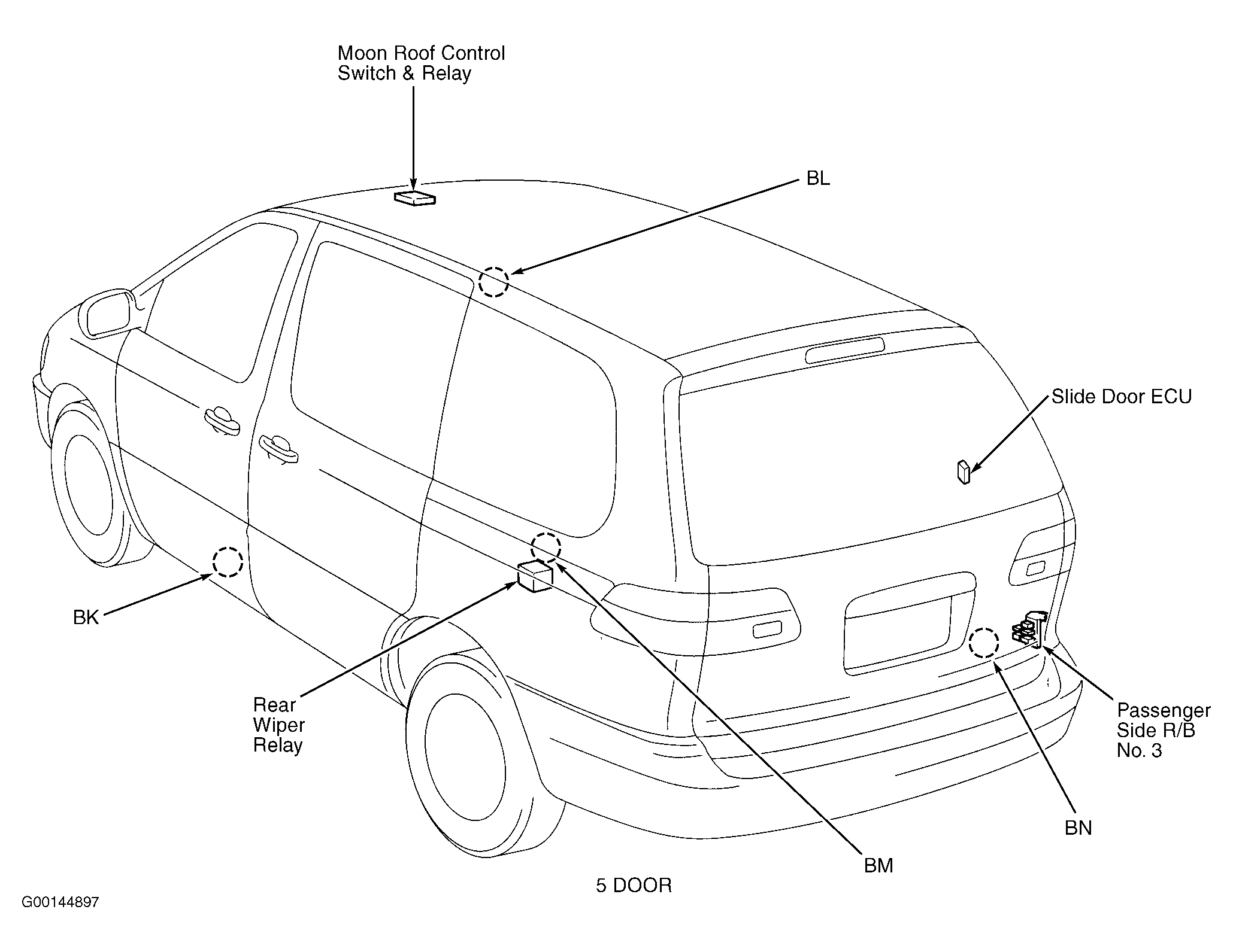 | Passenger Side R/B No. 3 (5-Door) | On right rear corner of vehicle. See Figure. |