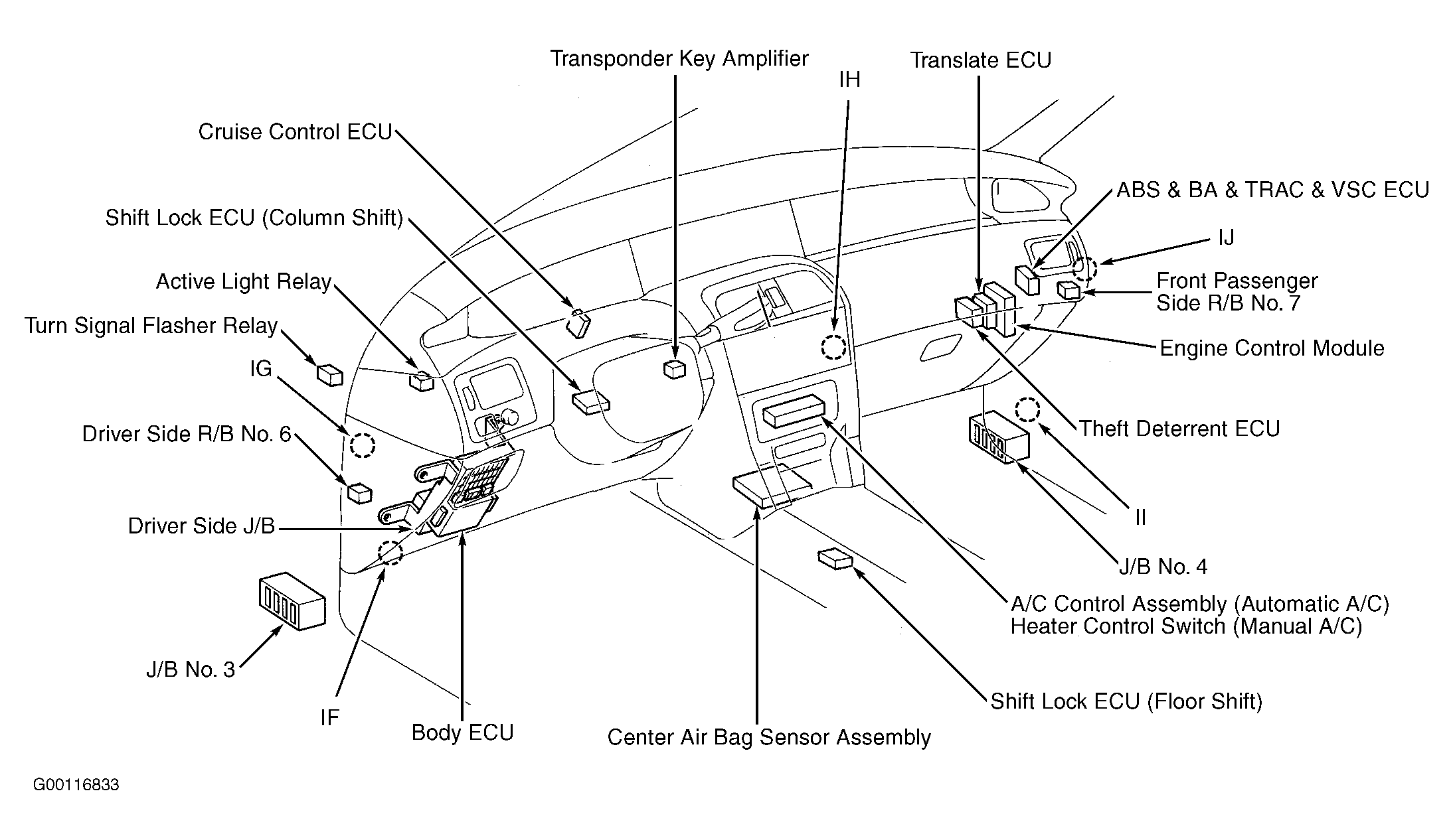 | ABS & BA & TRAC & VSC ECU | Behind right side of dash. See Figure. |