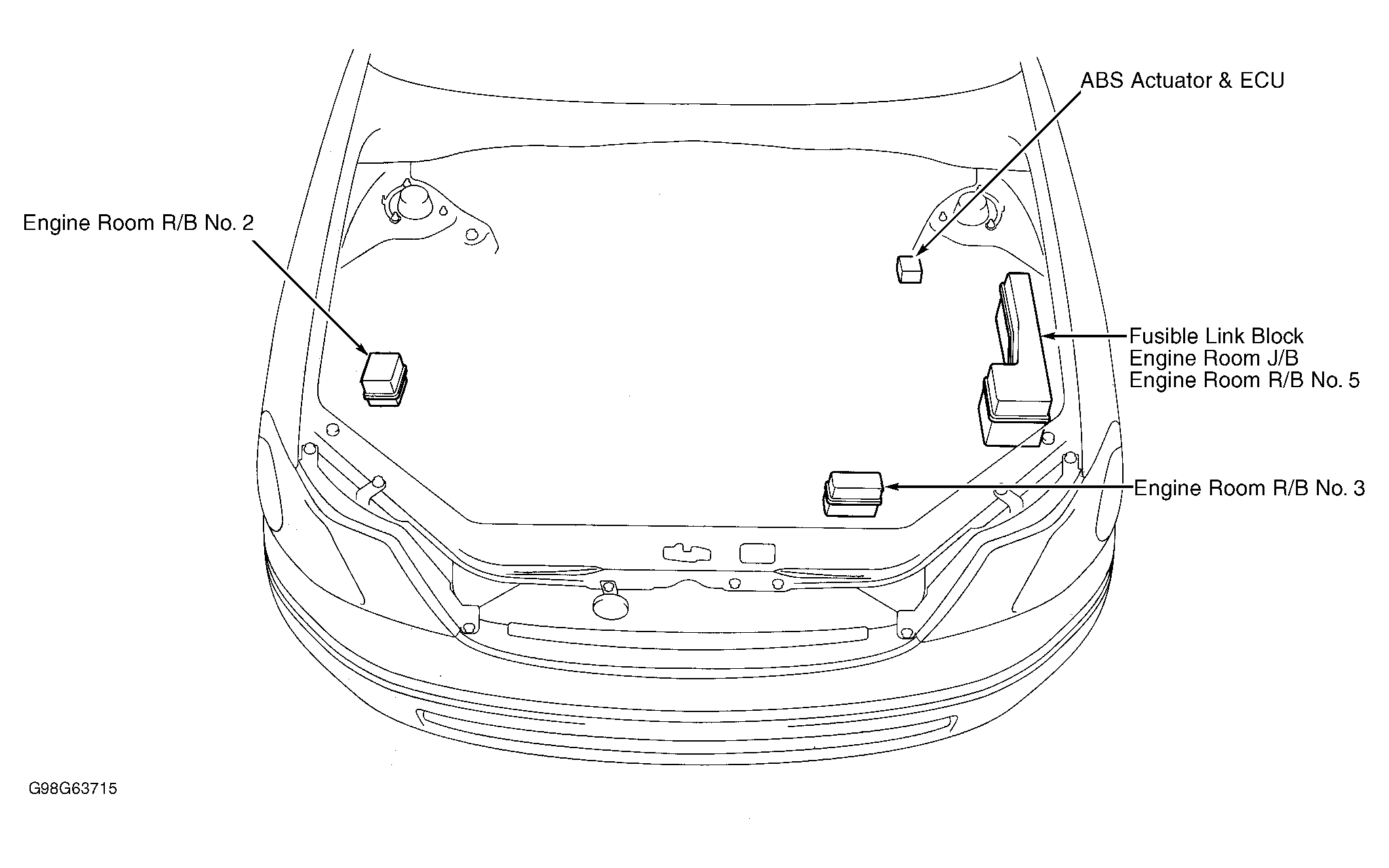 | ABS Actuator & ECU | On left rear of engine compartment. See Figure. |
