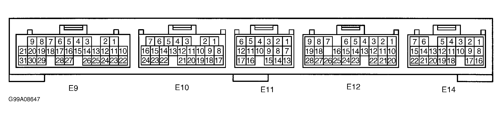 For testing of Engine Control Module (ECM) power and ground circuits, see ENGINE CONTROL MODULE (ECM) POWER SOURCE CIRCUIT . Also see PIN VOLTAGE CHARTS article. For illustration of ECM location, see THEORY & OPERATION article. For identification of ECM electrical connector terminals, see Fig 1-Fig 10 .