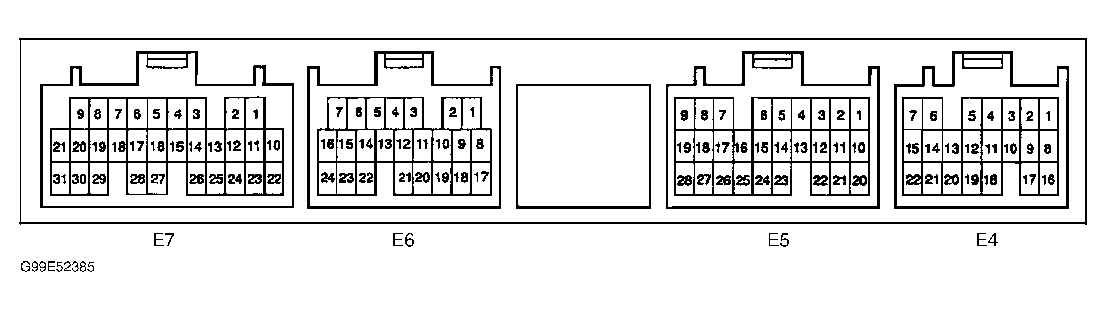 8. Ensure ignition is on. Using voltmeter, check voltage between body ground and terminal No. 21 (Black/White wire) at ECM electrical connector E4. This is the MREL terminal at ECM. Voltage should be 9-14 volts. If voltage is within specification, go to next step. If voltage is not within specification, check ECM ground circuit. See WIRING DIAGRAMS article. If ECM ground circuit is defective, repair ground circuit as necessary. If ECM ground circuit is okay, replace ECM.
