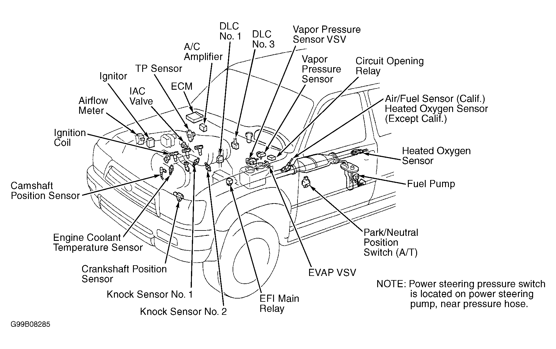 Fig 12: Locating Engine Control System Components (Tacoma 3.4L V6)