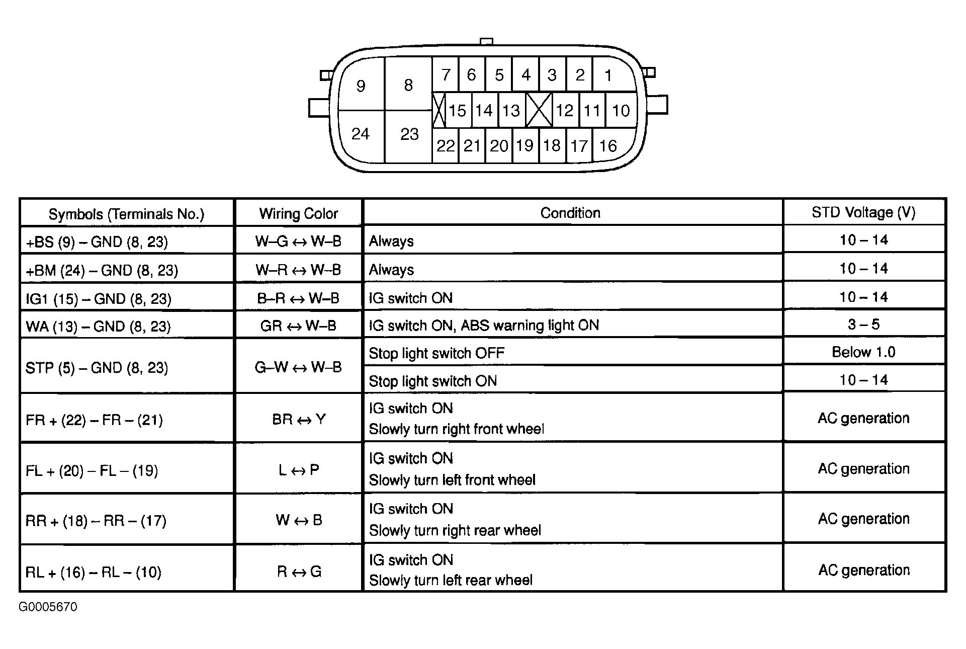 Fig 1: ABS Actuator/ECU Standard Values Chart