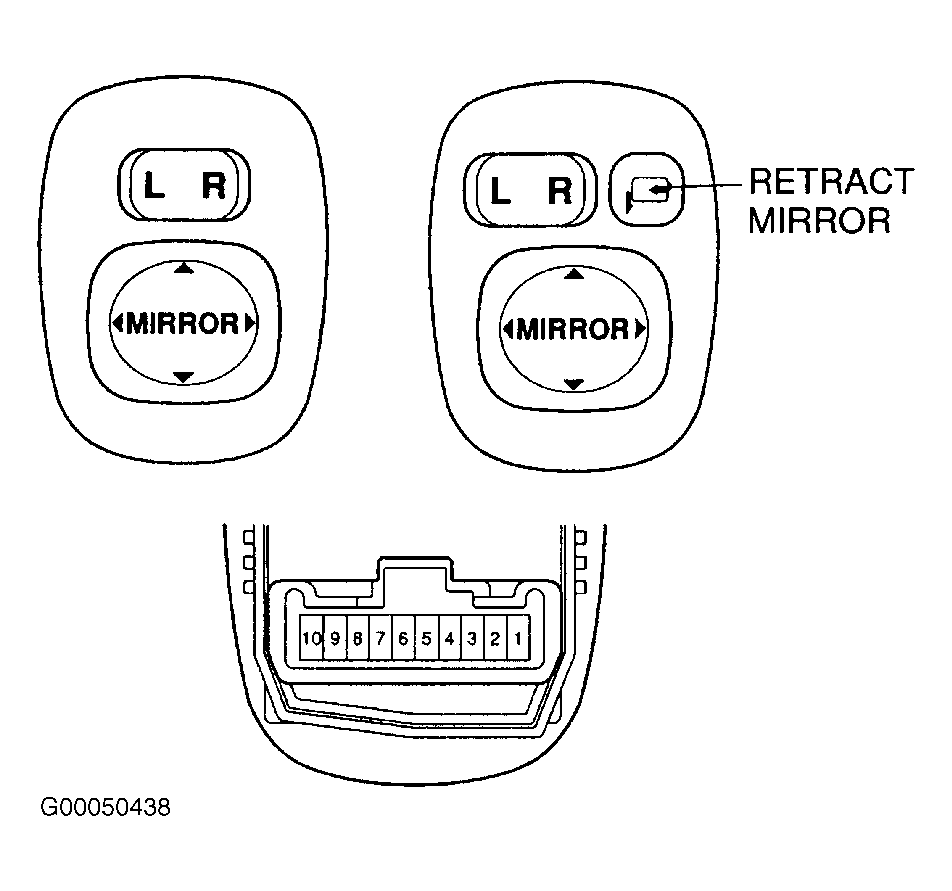 Courtesy of © TOYOTA, LICENSE AGREEMENT TMS1002 POWER MIRROR SWITCH CONTINUITY TEST (CAMRY & CAMRY SOLARA)