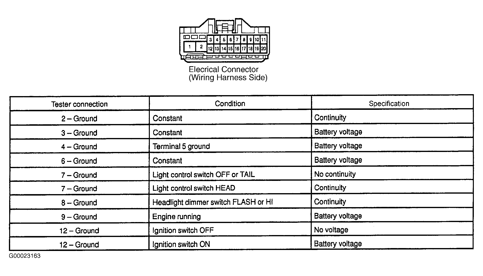 - Ensure ignition is off. Disconnect 20-pin electrical connector at daytime running light relay. Daytime running light relay is located near driver's side of instrument panel. See Figure.