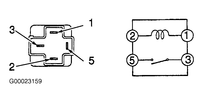- Note identification of electrical terminals on power relay. See Fig 1. Using ohmmeter, check that no continuity exists between terminals No. 3 and 5 on power relay. Check that continuity exists between terminals No. 1 and 2 on power relay.