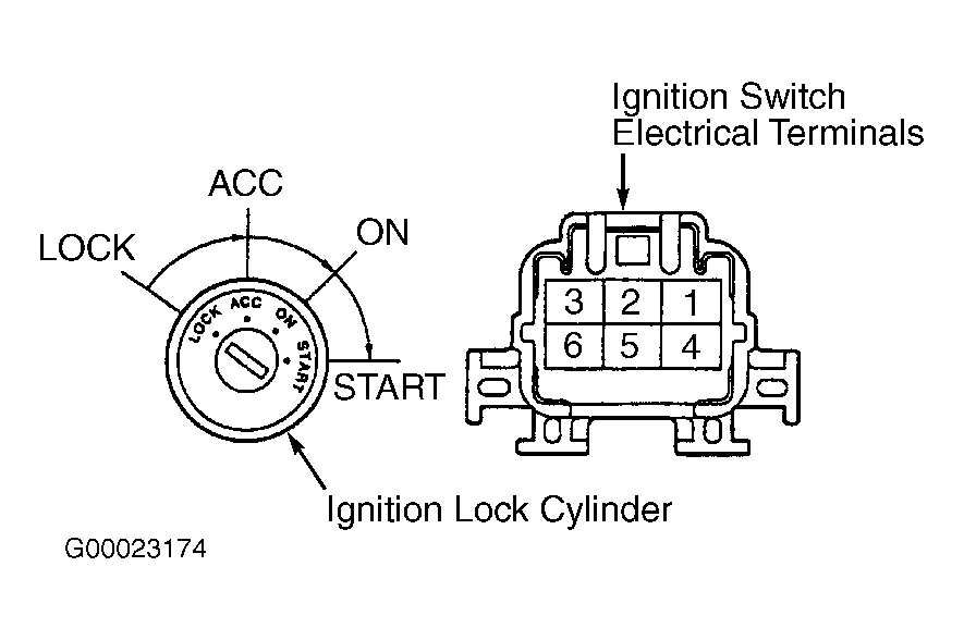 Fig 1: Identifying Ignition Switch Electrical Terminals & Ignition Lock Cylinder Positions