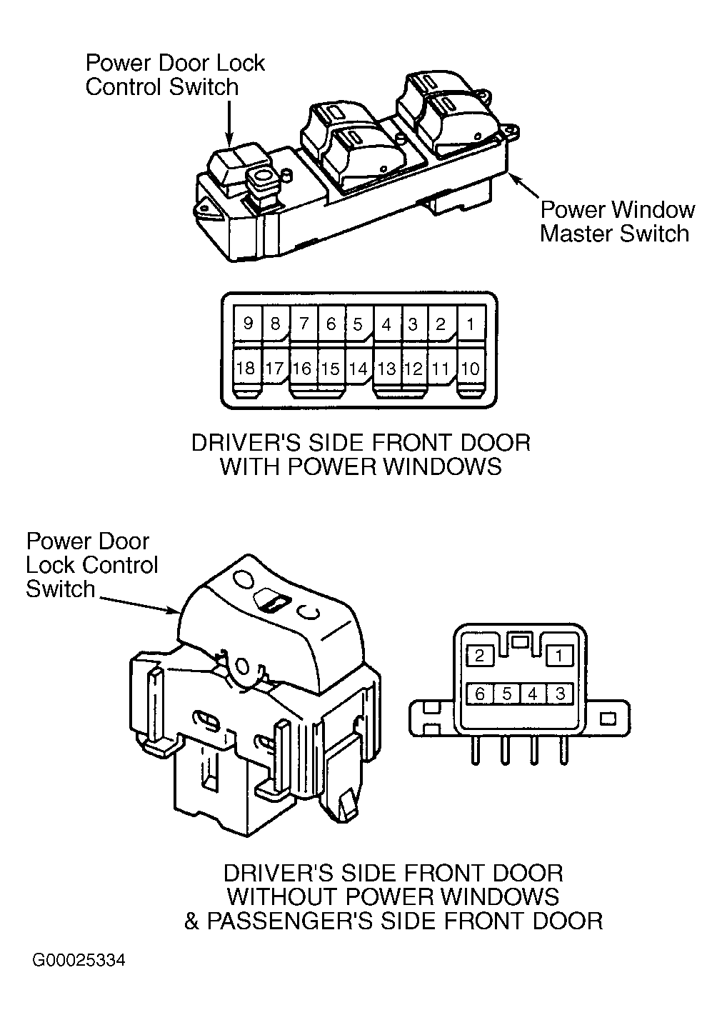 - On driver's side front door with power windows, power door lock control switch is incorporated into the power window master switch. See Fig 1. On driver's side front door without power windows and passenger's side front door, power door lock control switch is located on the door panel and is a separate switch.