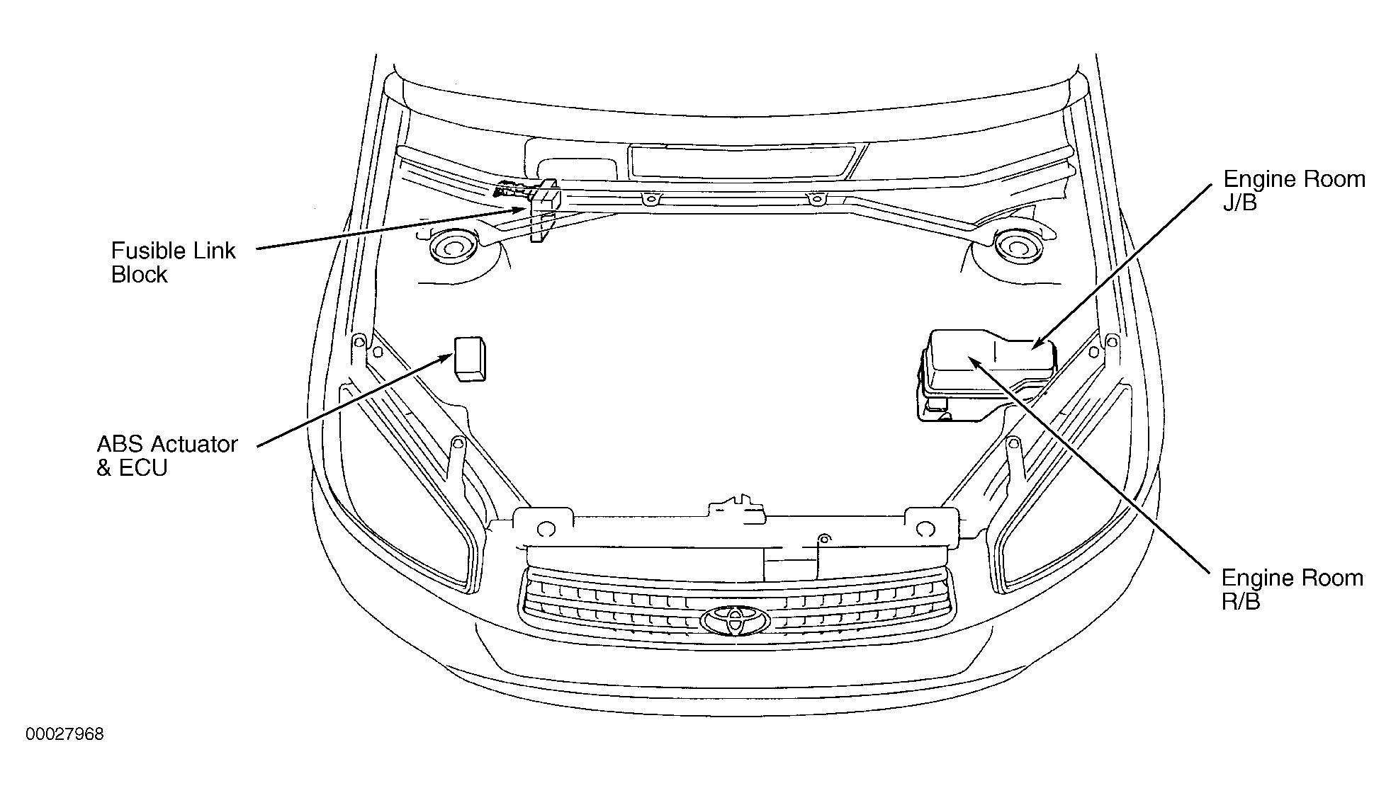 ABS Actuator & ECU At right side of engine compartment. See Figure.