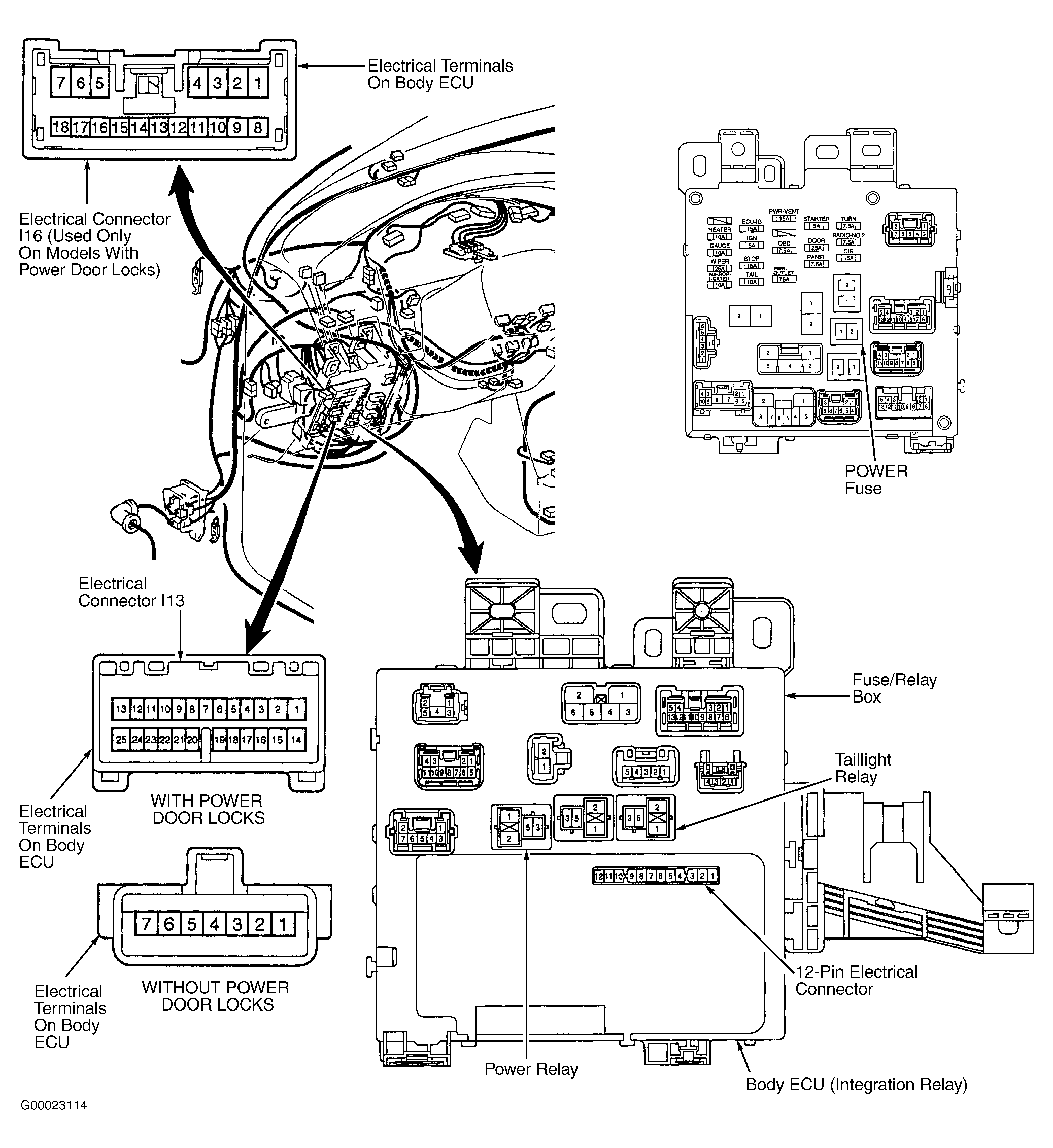 - Ensure ignition is off. Remove power relay. Power relay is located in fuse/relay box at driver's side of instrument panel. See Figure.