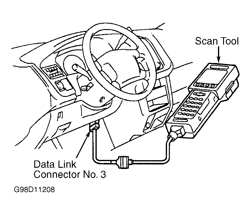 OBD-II regulations (SAE J-1962) standardizes configuration of Data Link Connector (DLC) No. 3. DLC No. 3 is located under driver's side of instrument panel. See Fig 1.