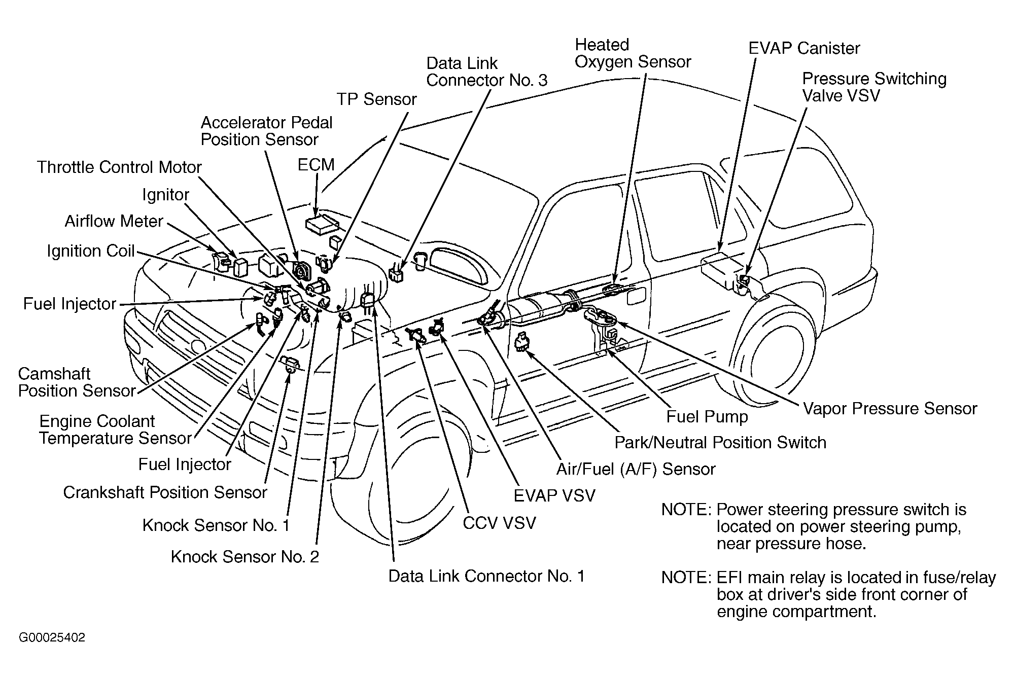 Engine control system is a computerized emission, ignition and fuel injection control system. Engine control system lowers exhaust emissions while maintaining good fuel economy and driveability. Engine control system consists of various sensors, switches and control units. See Fig 1-Fig 21
