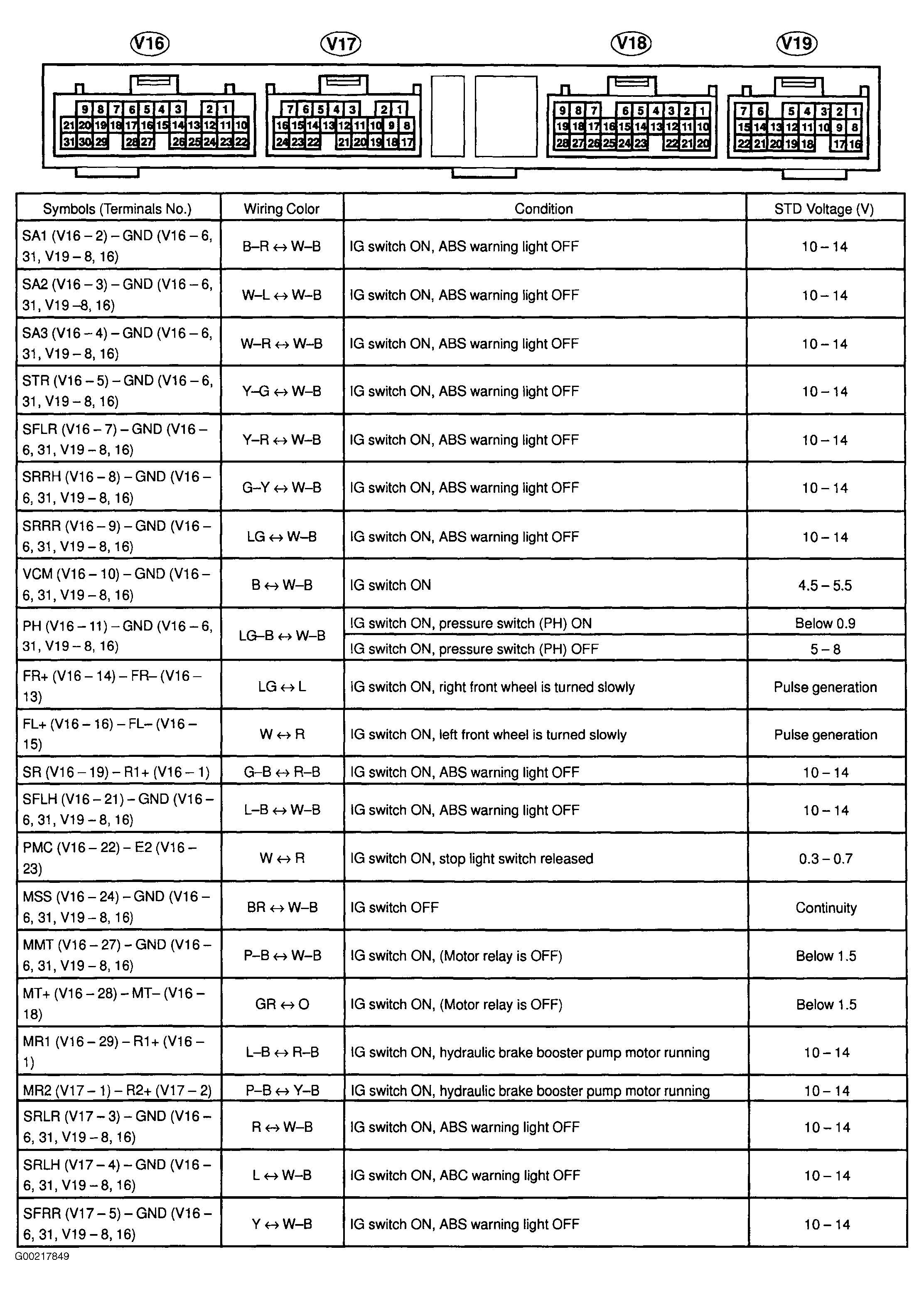 Fig 2: 4Runner ABS ECU Pin Voltage Chart (2 of 3)