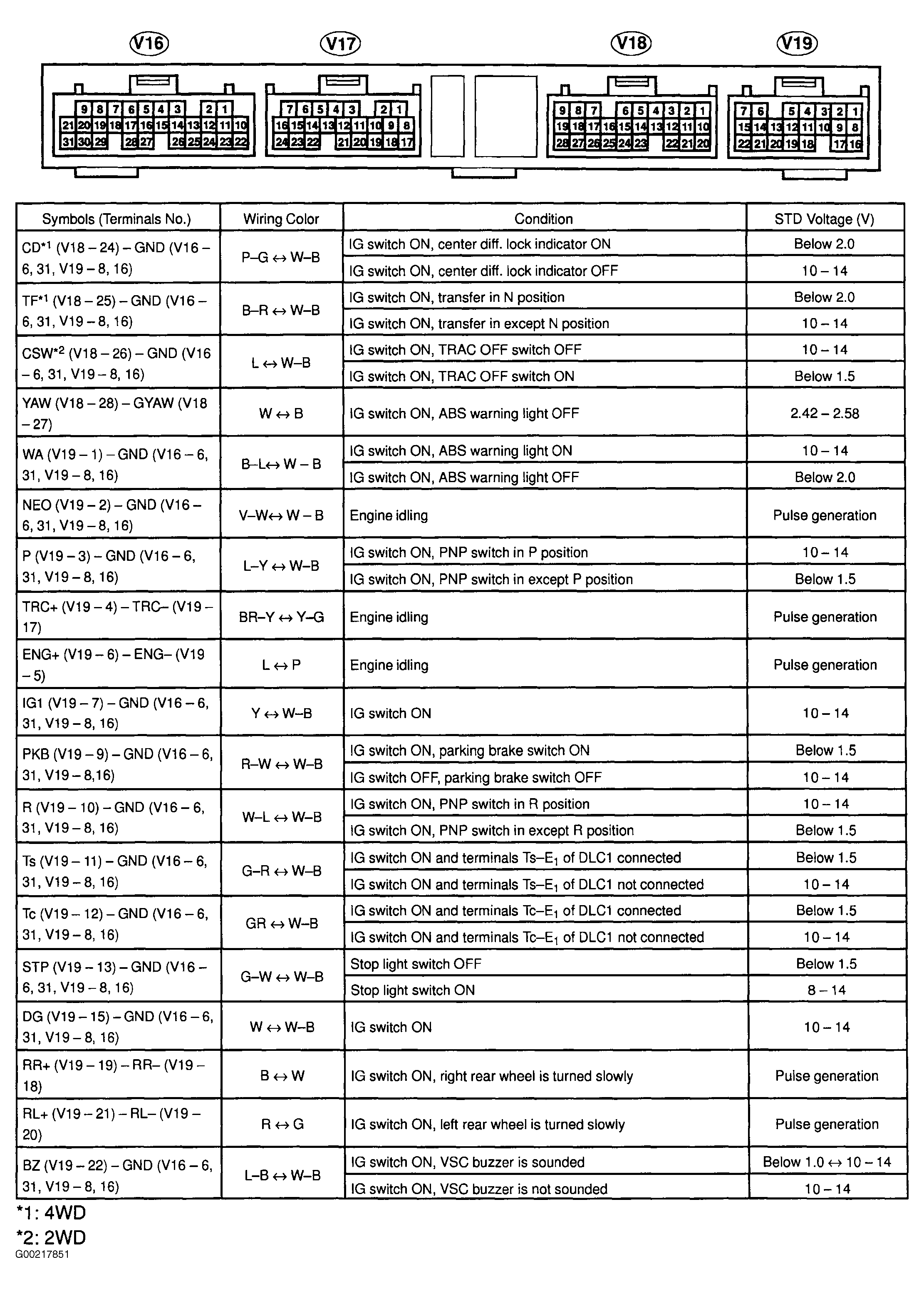 Fig 1: 4Runner ABS ECU Pin Voltage Chart (1 of 3)