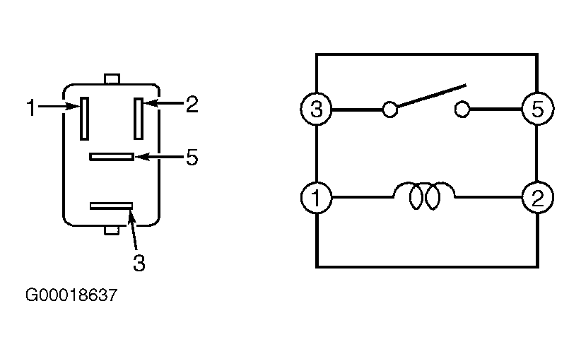 - Note identification of electrical terminals on power main relay. See Fig 1. Using ohmmeter, check that no continuity exists between terminals No. 3 and 5 on power main relay. Check that continuity exists between terminals No. 1 and 2 on power main relay.
