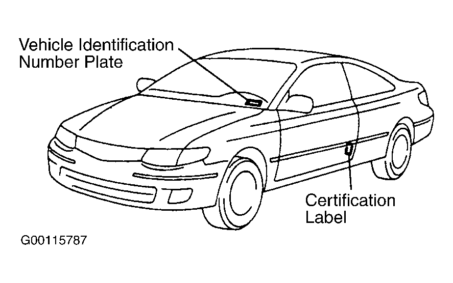 The vehicle identification number is stamped on the vehicle identification number plate and the certification label, as shown in the illustration.