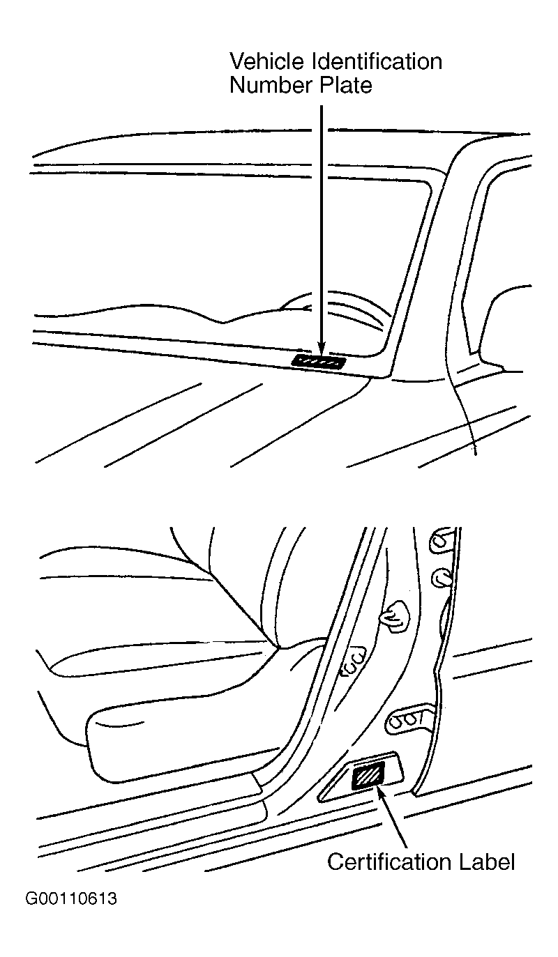 The vehicle identification number is stamped on the vehicle identification number plate and the certification label, as shown in the illustration.