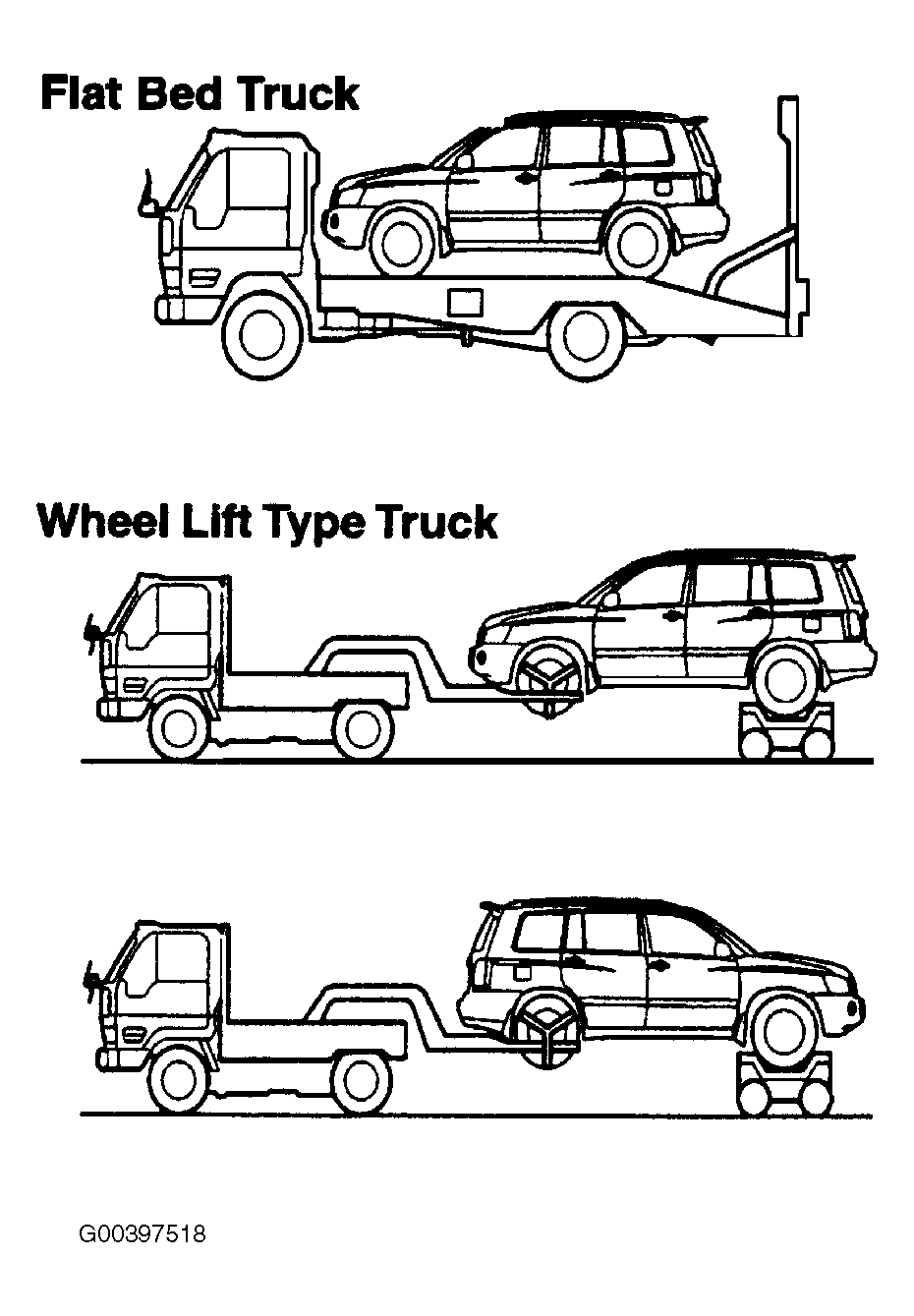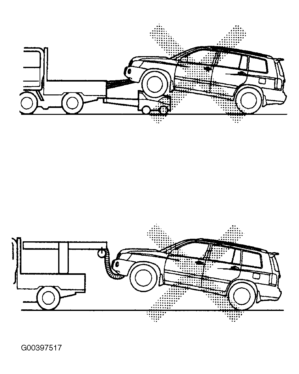 - Towing the vehicle should be done by one of the towing methods shown. See Fig 1.