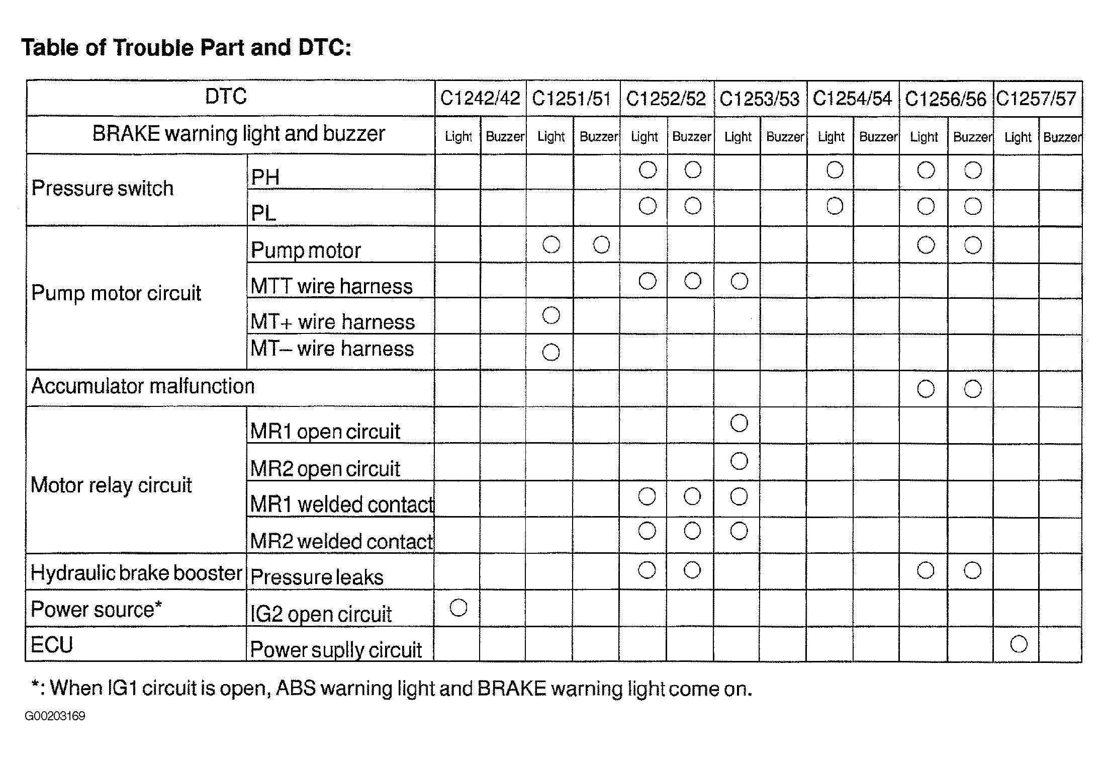 C1202  58  Brake Fluid Level Low. Open Circuit In Brake Fluid Level Warning Switch Circuit