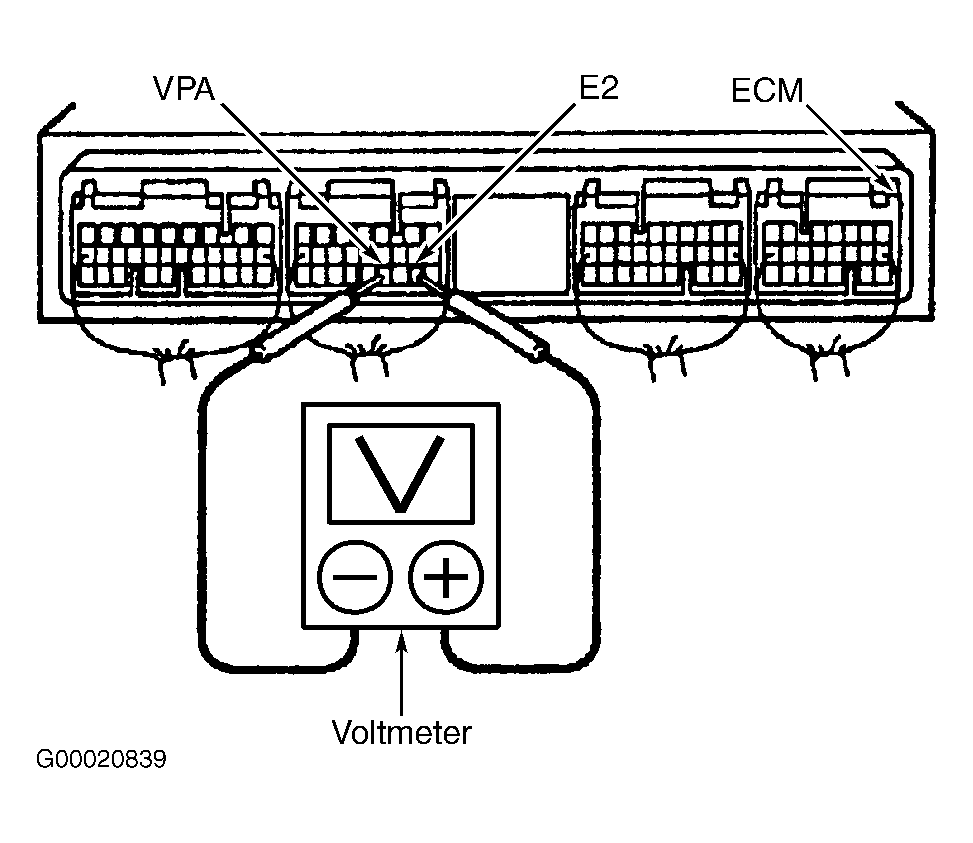 Fig 2: Testing Voltage At Engine Control Module Terminals VPA & E2 (MR2 With Sequential Manual Transaxle)