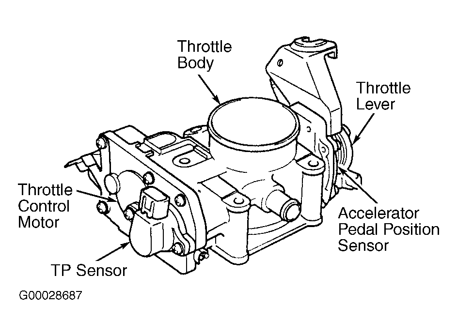 2. To check throttle control motor operation, turn ignition on. Rotate throttle lever on throttle body to full throttle while listing for operating sound at throttle control motor and note that no grinding noise is heard at throttle control motor and throttle body. Throttle lever will also rotate accelerator pedal position sensor.
