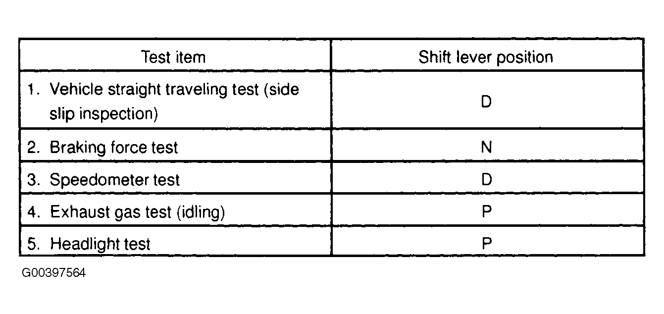 - Activate the service mode and inspect the vehicle. The shift position for each test is as described in Fig 1.