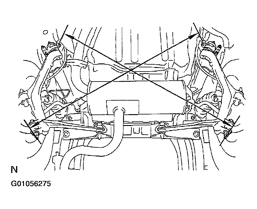 - Measure the distance from the LH lower suspension arm bracket set bolt to the RH axle carrier rear side set bolt as shown in Fig 4.