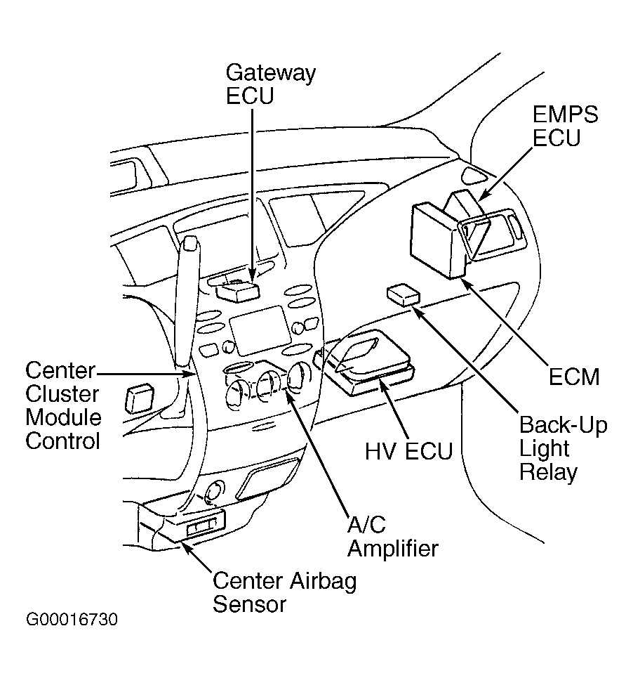 Fig 1: Locating Engine Control Module & A/C Amplifier (Prius)