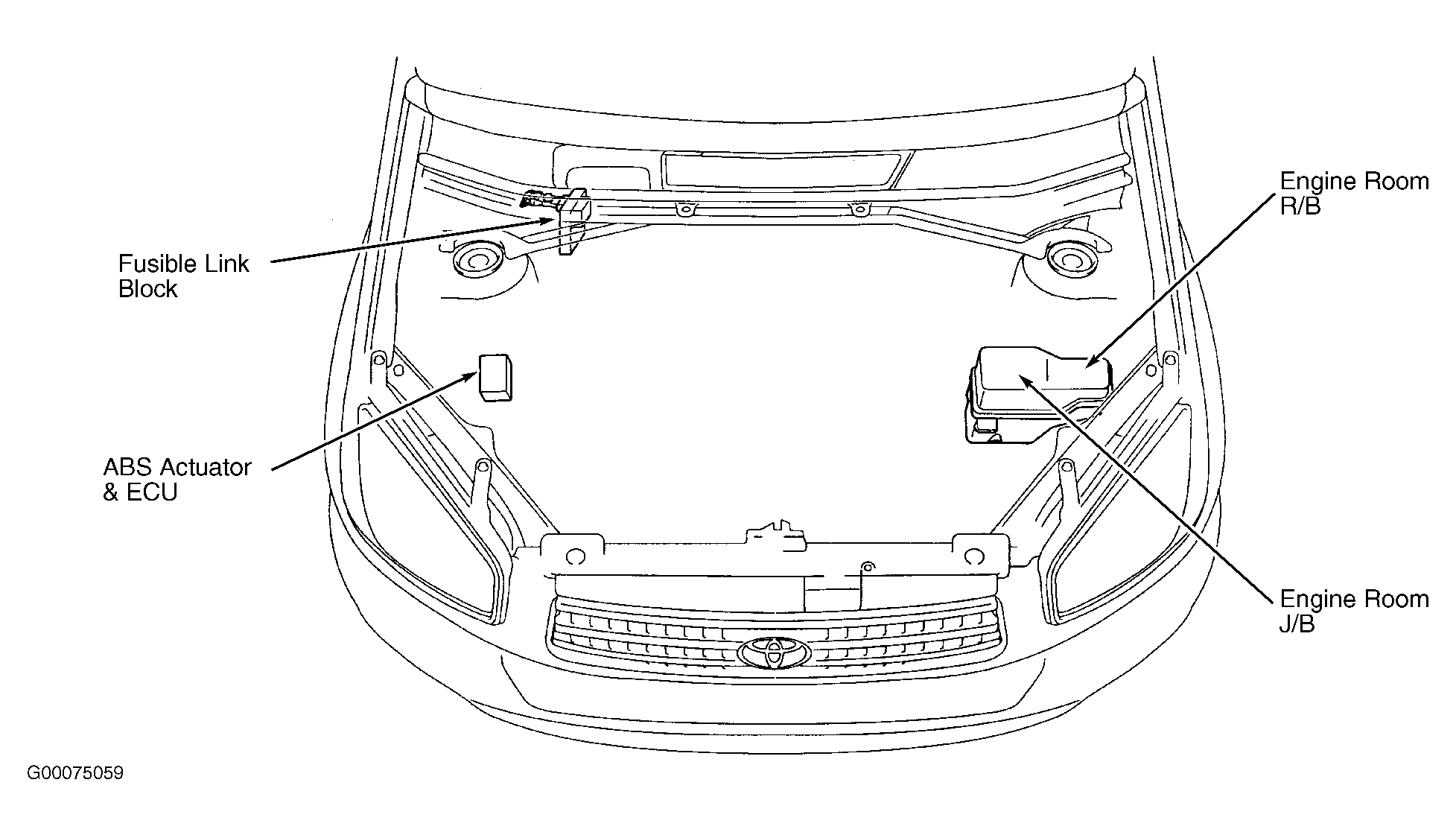 ABS Actuator & ECU At right side of engine compartment. See Figure.