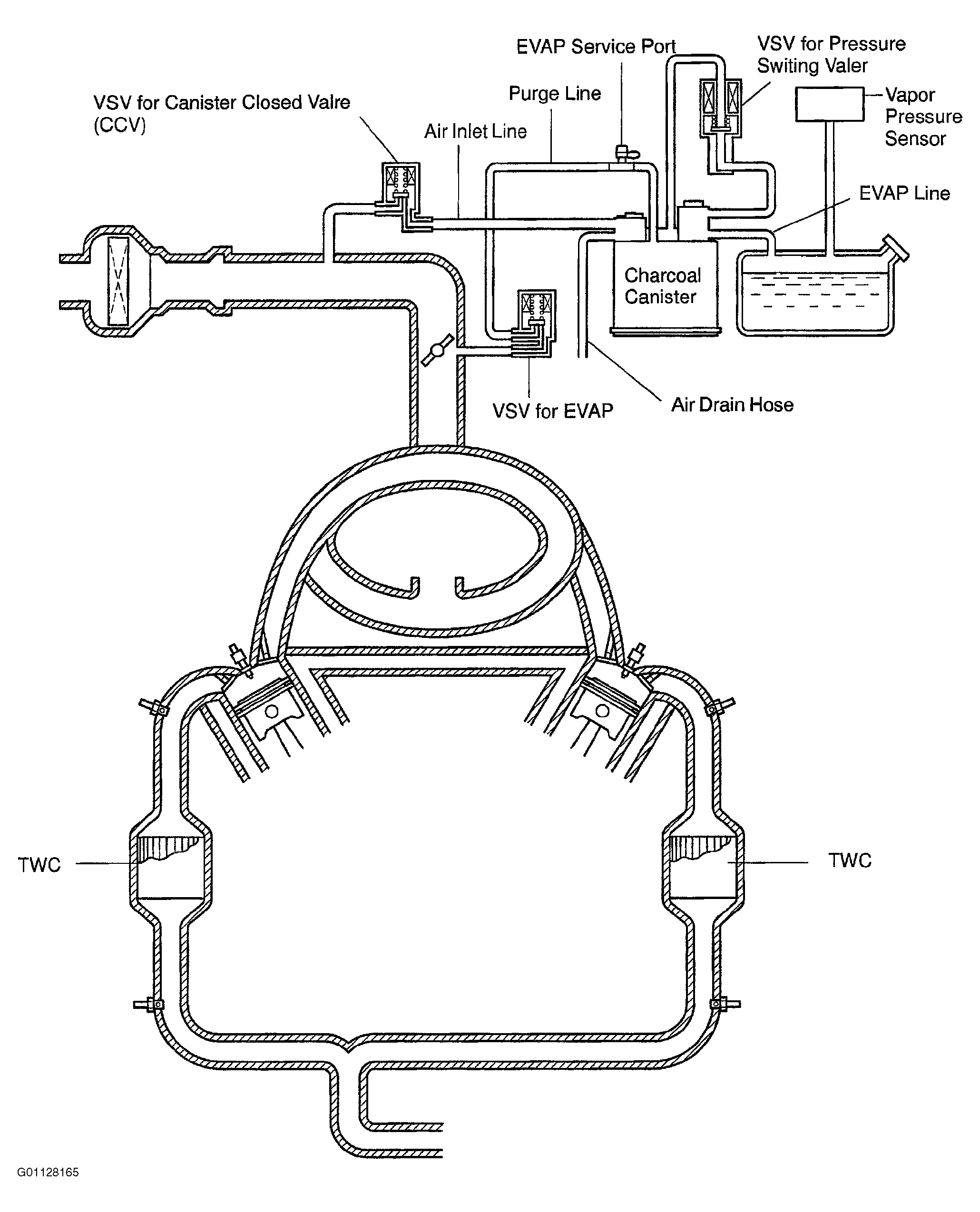 For a schematic drawing of the emission control system, see illustration. See
