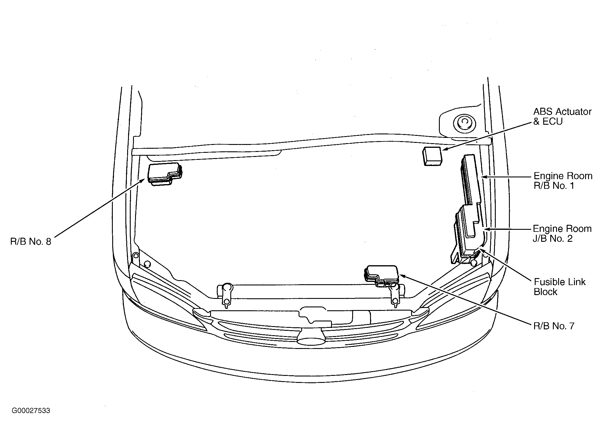 | ABS Actuator & ECU | On left rear of engine compartment. See Figure. |