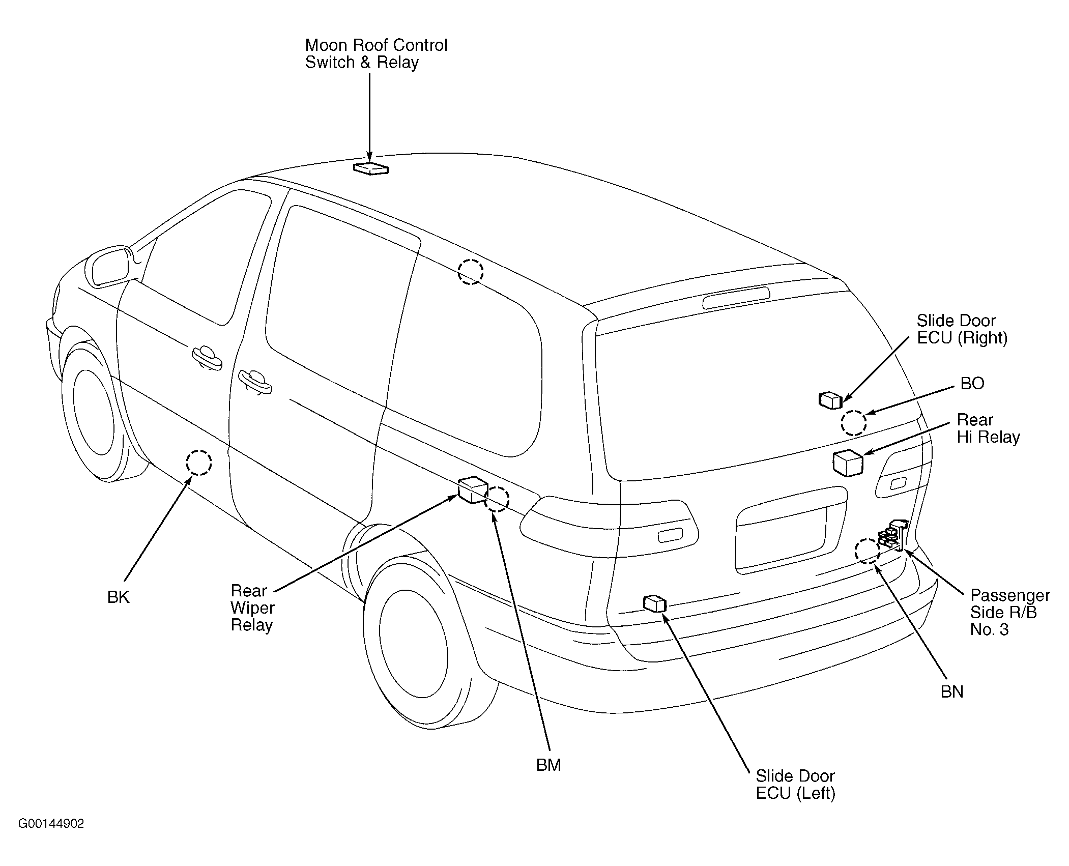 | Slide Door ECU (Left) | Below left taillight. See Figure. |