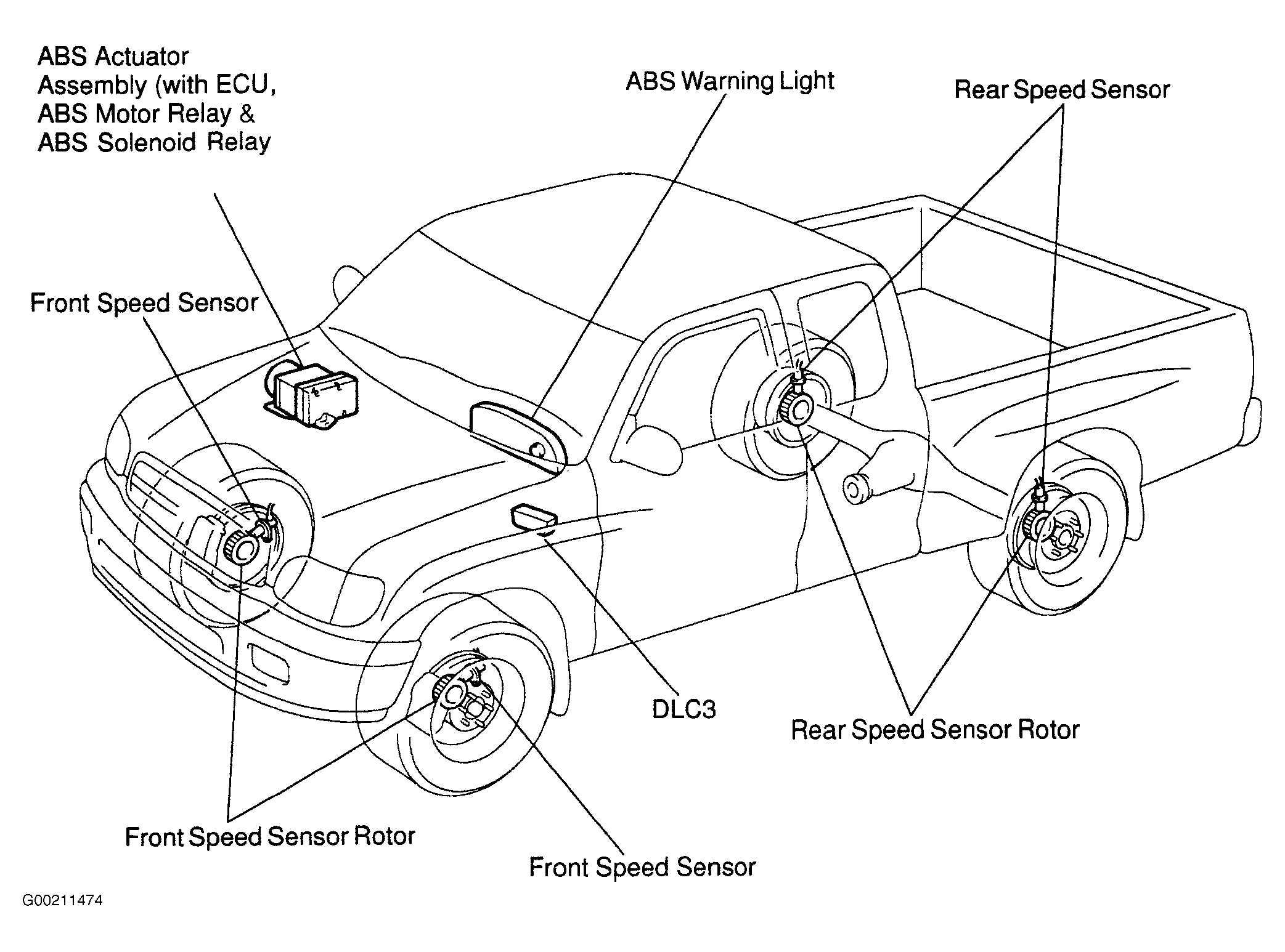 Anti-Lock Brake System (ABS) consists of hydraulic unit, actuator, solenoids, pump motor, ABS Electronic Control Unit (ECU), relays and wheel speed sensors. See Fig 1.