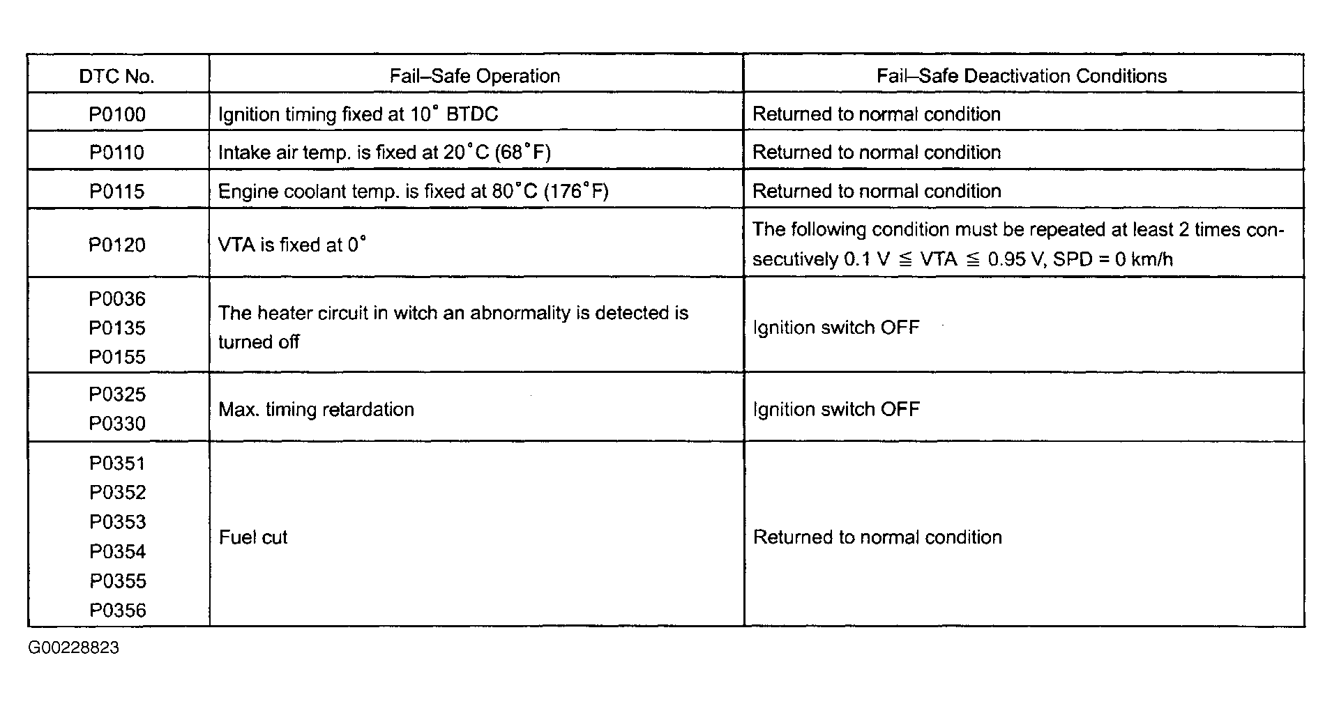 Home >> Toyota >> 2003 >> Avalon XLS >> Repair and Diagnosis >> Engine Performance >> System >> Engine Control System Self Diagnostics >> Self-Diagnostic System >> Fail-Safe Chart