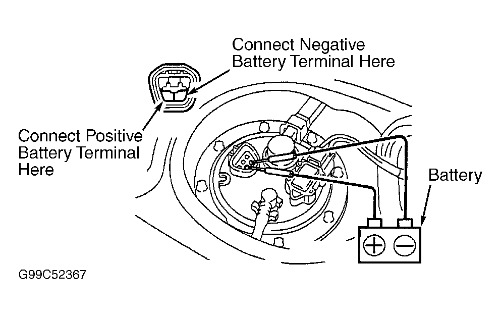 - If you have no hand-held tester, connect positive (+) and negative (-) leads from battery to fuel pump connector. See Fig 2.