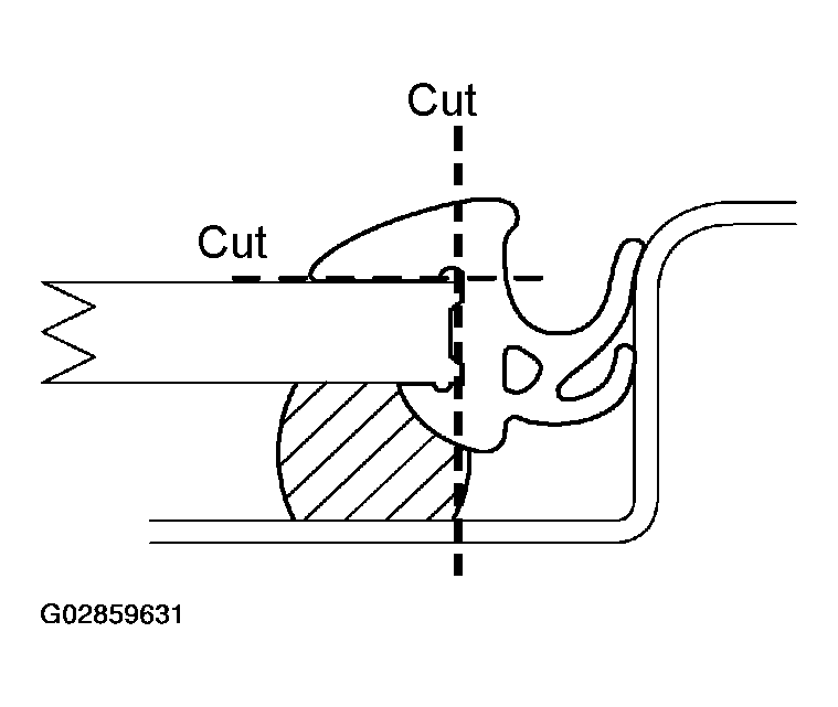 - Using a knife, cut off the windshield molding outer upper as shown inFig 3.