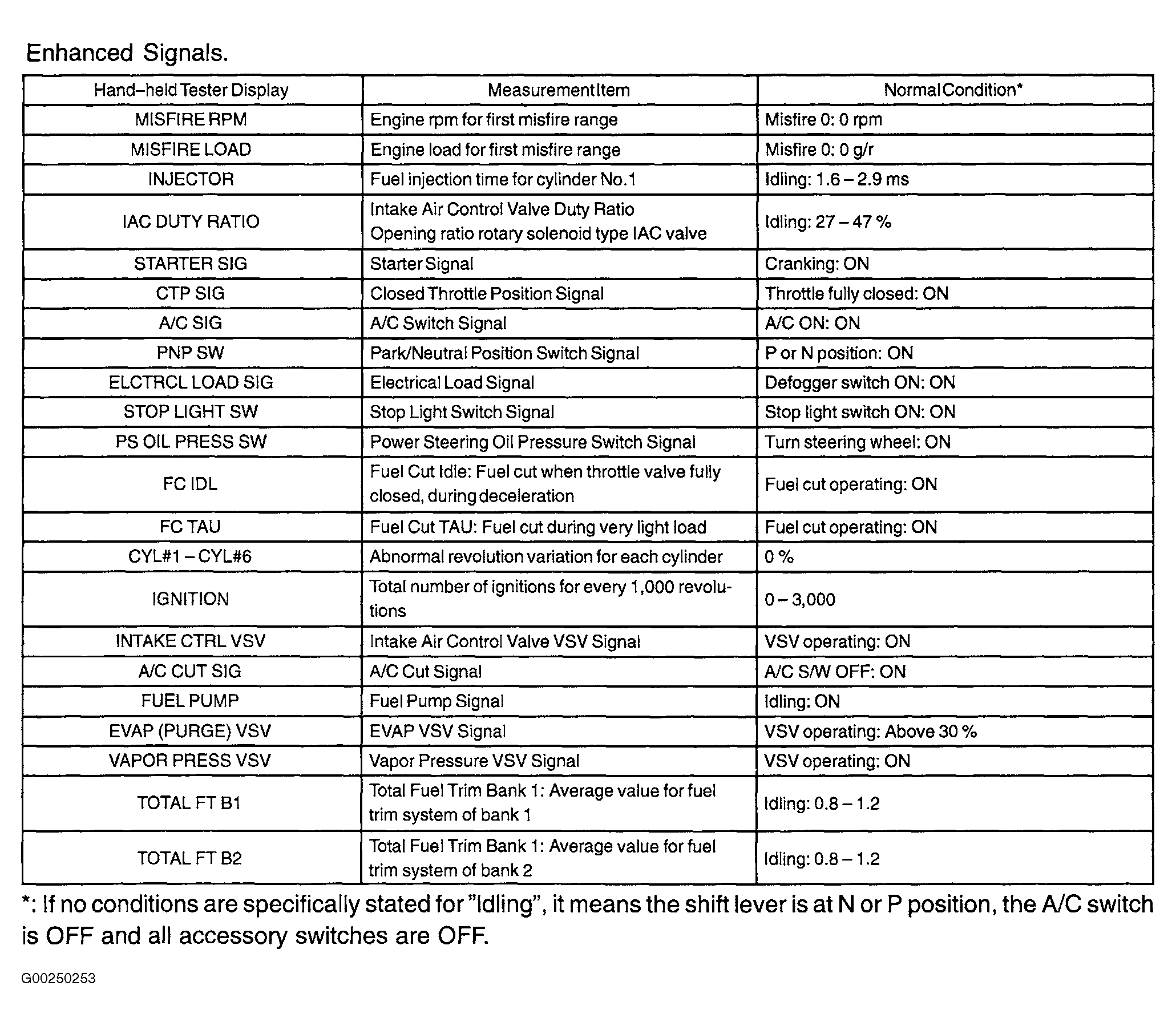 Home >> Toyota >> 2003 >> Highlander Limited, FWD >> Repair and Diagnosis >> Engine Performance >> System >> Engine Control System Self Diagnostics - V6 >> Self-Diagnostic System >> Engine Operating Condition